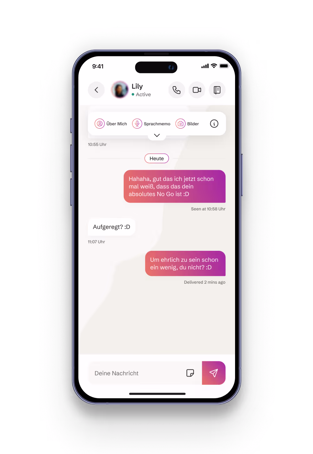 Erst im Chat schaltet ihr gemeinsam Bilder, Stimmen und weitere Infos frei. Das sorgt für tiefere Gespräche, mehr Spannung und Matches, die wirklich zu dir passen.