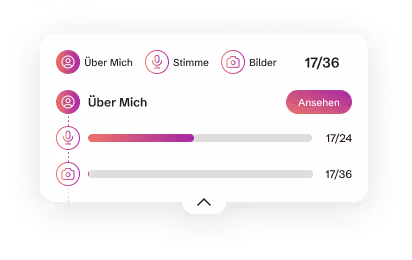 Statt statischer Texte findest du aktuelle Einträge aus deinem Leben, grundlegende Infos wie Job, Sternzeichen oder Kinderwunsch – und interaktive Elemente wie This-or-That oder Slide-to-Vibe.